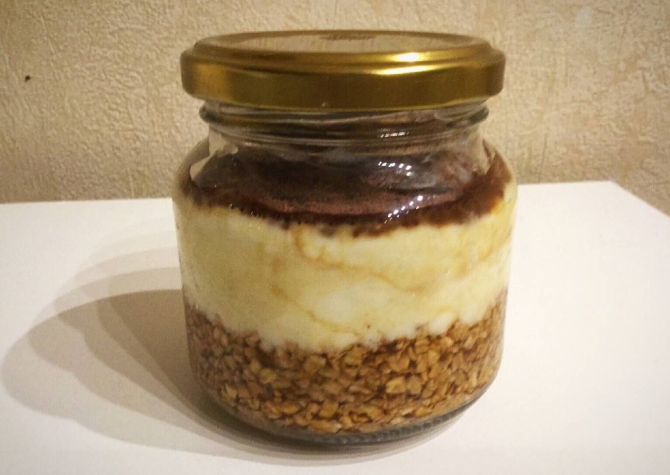 - Verter la preparación de yogur sobre la avena y el café