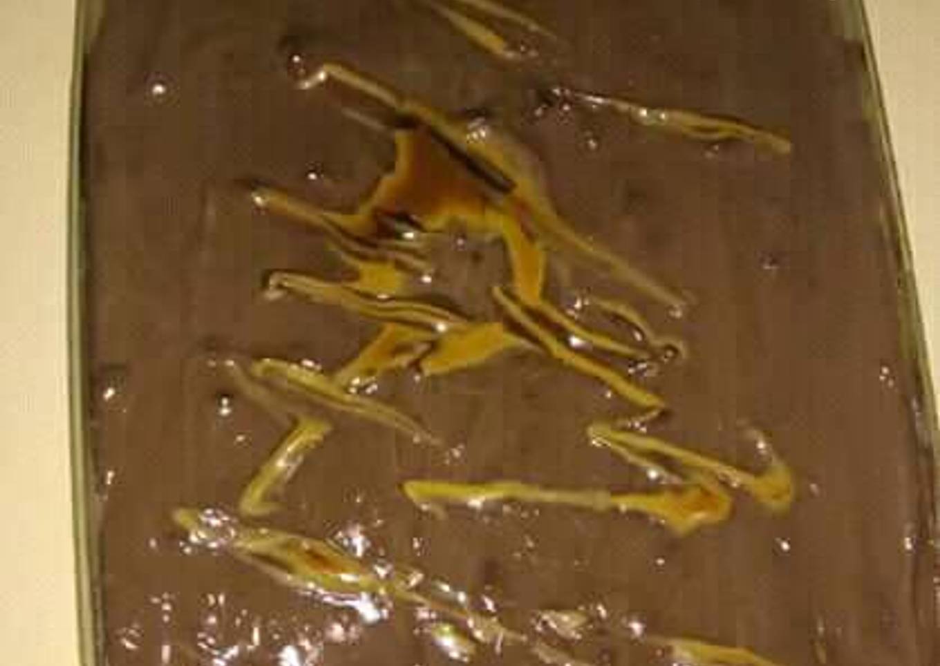 - Preparamos el postre de chocolate y una vez listo, volcamos un poco del postre, en el molde y reservamos el resto.