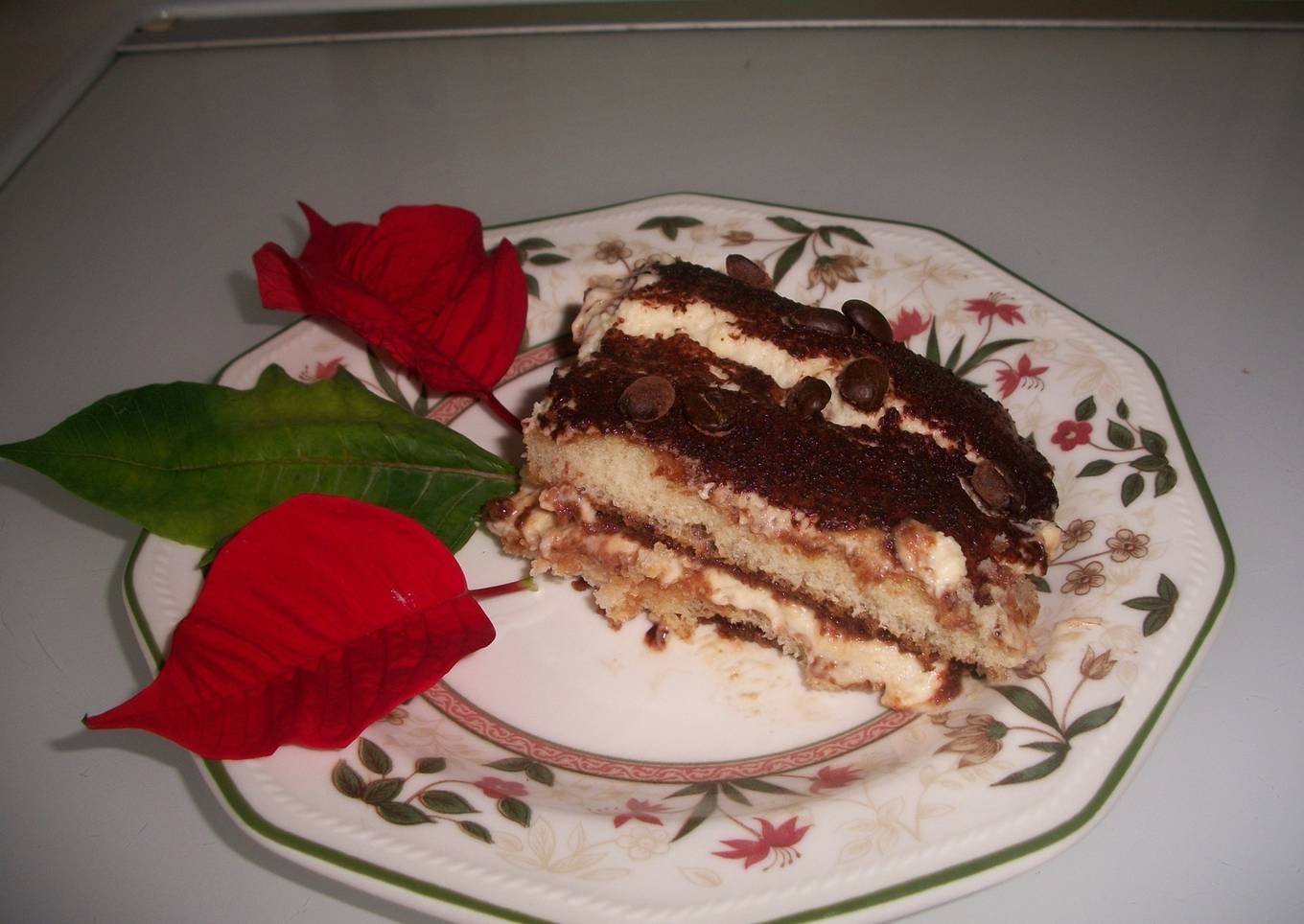- La ultima de crema, espolvoreamos de cacao en polvo y adornamos con granos enteros de café, metemos al fresco hasta el momento de servir.