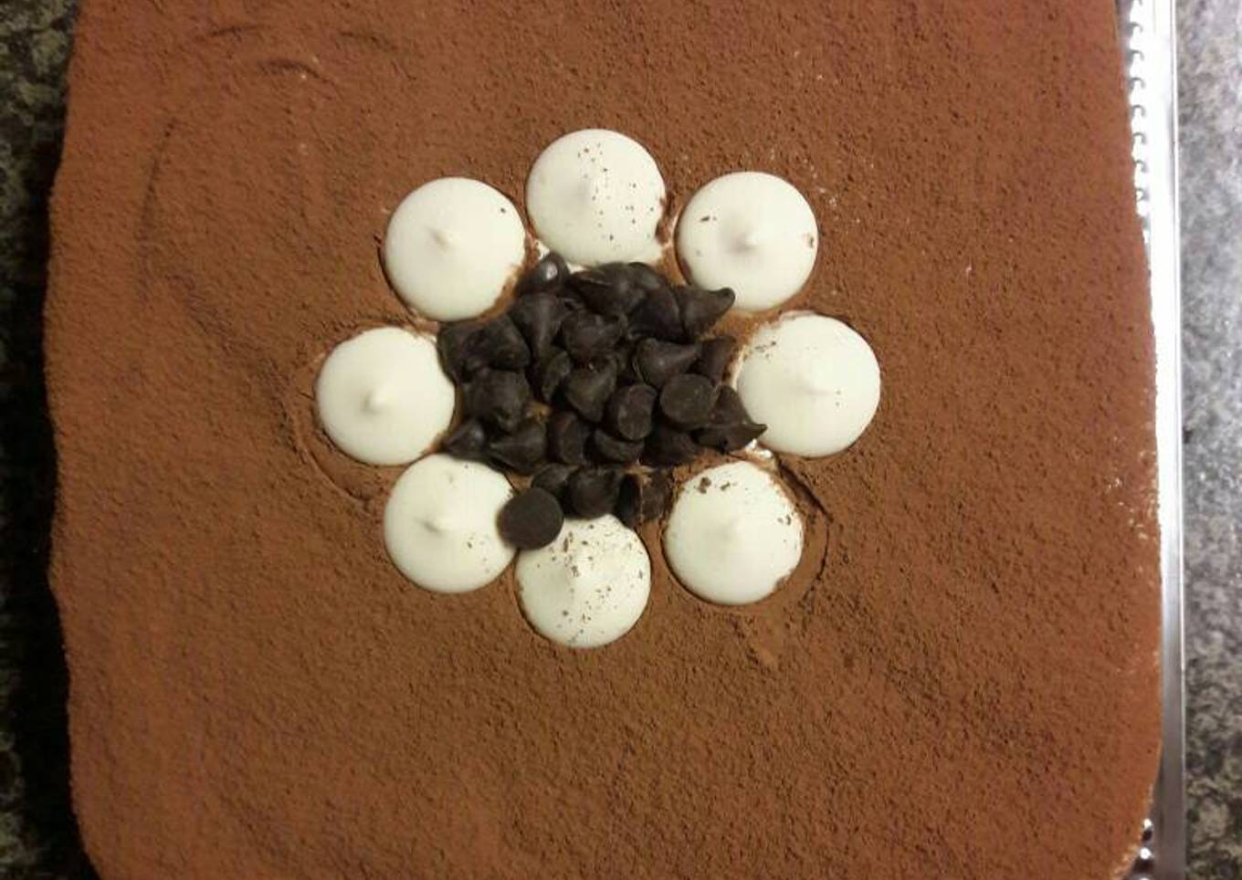 - Y formar una capa con la crema y espolvorear cocoa en polvo