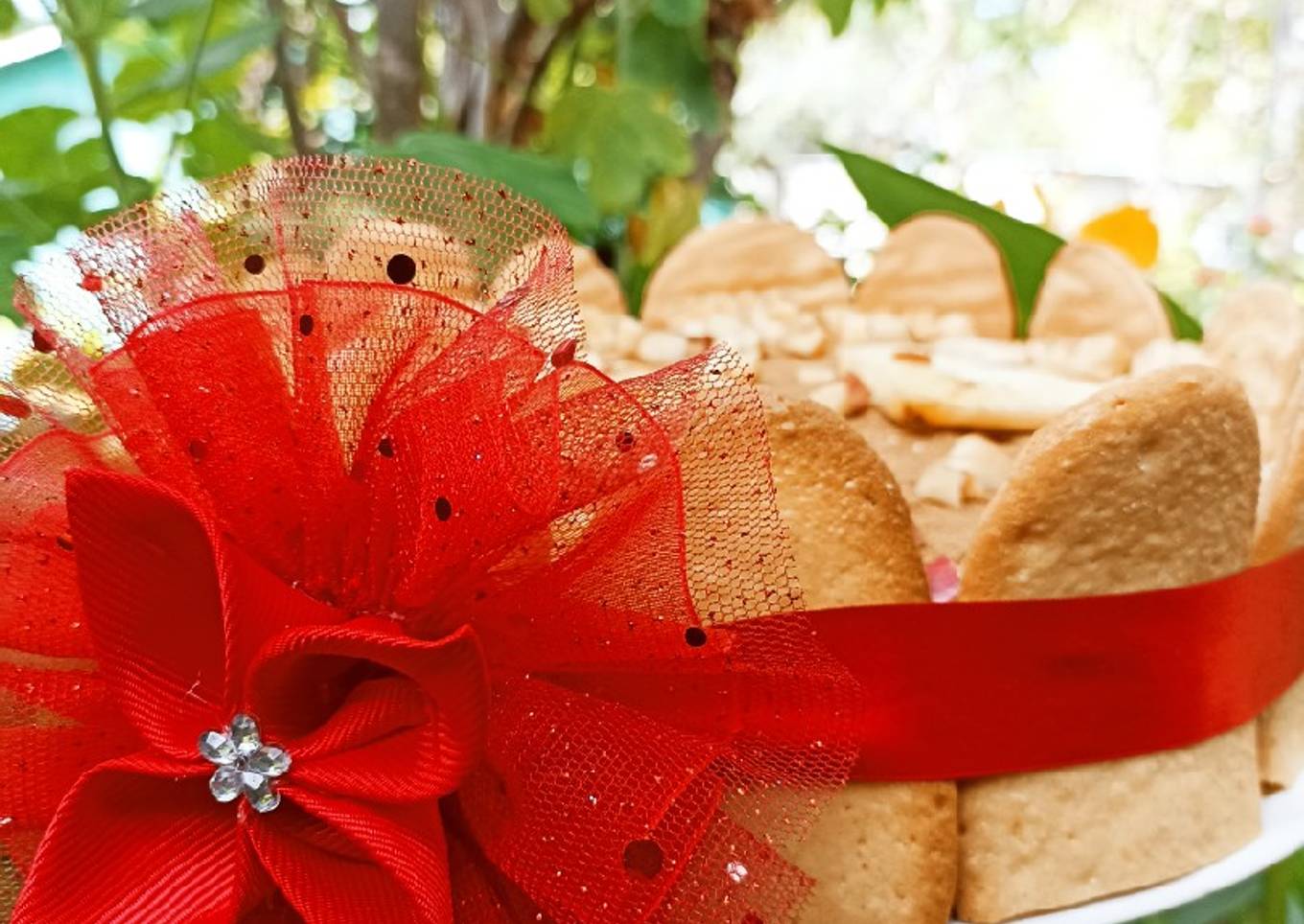 - Una vez refrigerado nuestro postre cortaremos nuestras soletas a la altura del tiramisú, colocar alrededor y sujetarlas con un listón.