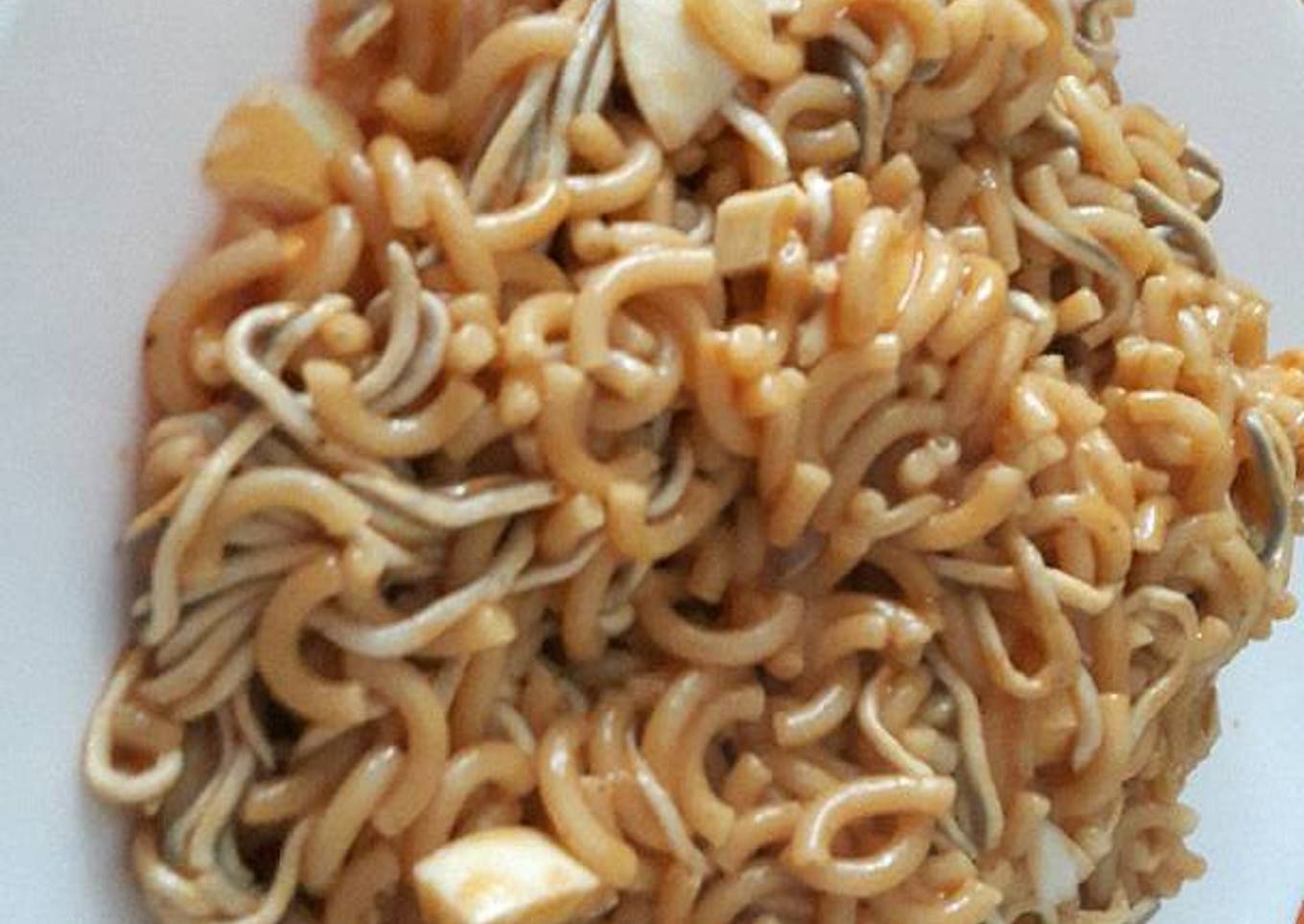 Estaba solo en casa y no tenia ganas de salir al abrir la despensa unos tristes fideua esperando su oportunidad al igual que en el frigorífico un trite paquete de gulas así que ya tenia la comida.