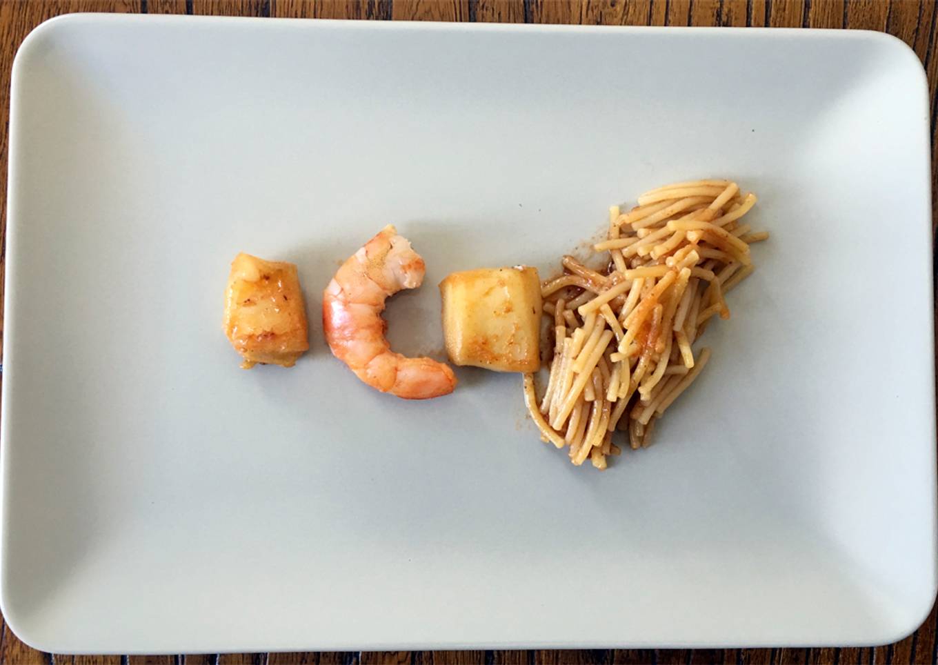 - Cuando falten unos cinco minutos para terminar la cocción, depositamos los langostinos pelados sobre los fideos y terminamos de hacer.