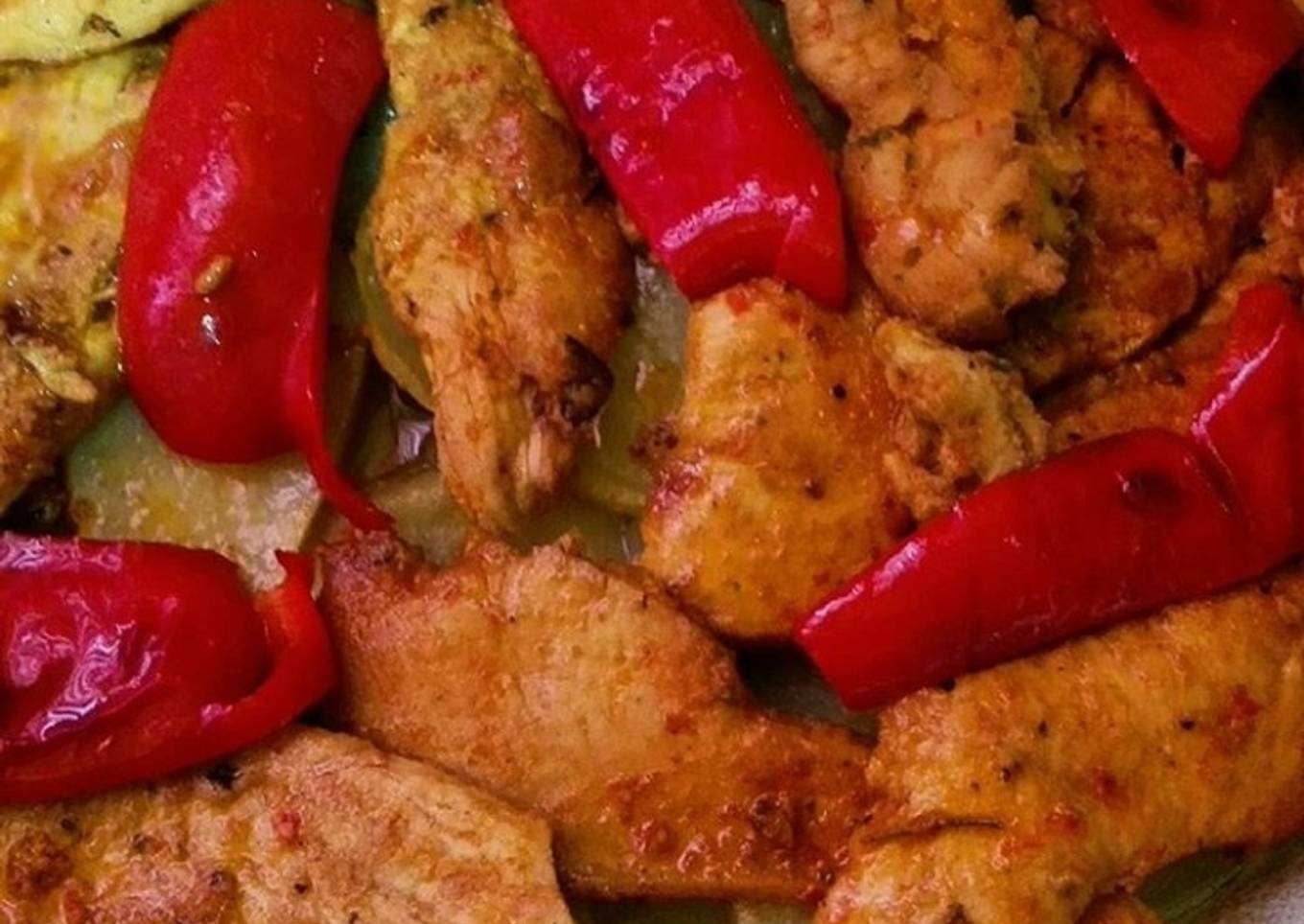 - Grupo tengo la receta del mojo rojo ya puesta, así que lo podéis ver en mis recetas, coger la pechuga mejor fileteada salar un poco, y embadurnar con el mojo y reservar,
