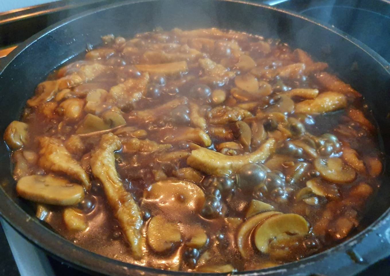 Instructions to make to make Pechuga de pollo con salsa de soja y champiñones a mi manera