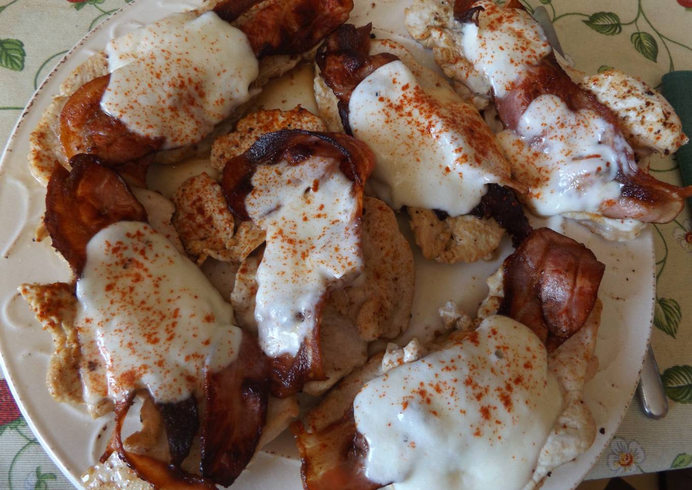 Filetes de pechuga de pollo con bacon ahumado y mozzarella
