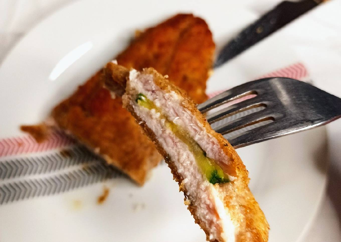- Ponemos una pechuga, encima una lámina de calabacín, el queso, otra de calabacín, otra pechuga, salamos y pasamos por huevo y pan rallado, al que le podemos añadir un poco de ajo en polvo y perejil (al gusto), a mi me gusta así más.